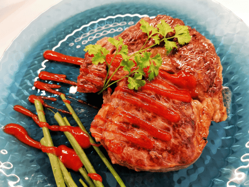 Сочный стейк рибай — это воплощение настоящего вкуса и ароматного удовольствия, которое берет свое начало в традициях европейской кухни. Мраморная текстура мяса делает его нежным и сочным, а обжарка на раскаленной сковороде гриль придает аппетитную корочку и восхитительный дымный аромат. Сливочное масло, пропитывающее стейк, добавляет насыщенность вкусу, а смесь перцев и соус чили — пикантную остроту. Этот стейк идеально подходит как для уютного ужина, так и для праздничного застолья, раскрывая всю глубину мясного вкуса. Подавайте его с бокалом красного вина или свежими овощами, чтобы подчеркнуть его богатые гастрономические оттенки. Истинное наслаждение для ценителей качественного мяса!