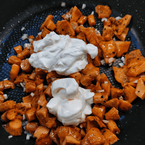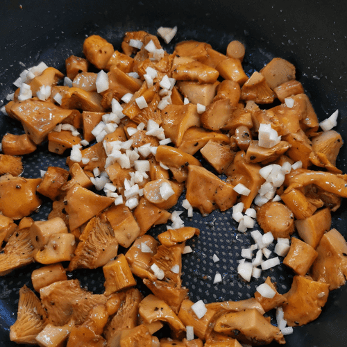 Выложить в сковороду лисички.