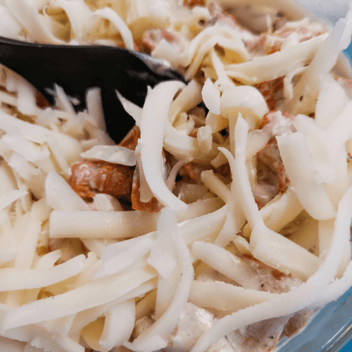 Добавить моцареллу и перемешать.