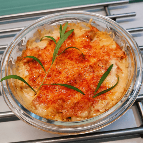 Жюльен из лисичек — это изысканное блюдо, рожденное в творческом порыве кулинарных экспериментов. Лисички, известные своим нежным ореховым вкусом, сочетаются с мягкостью сливочного и творожного сыра, создавая гармоничное богатство текстур. Запеченная под слоем моцареллы и тертого сыра, эта горячая закуска окутывает ароматами леса, тепла и уюта. Легкая пикантность смеси перцев и чили придает блюду насыщенность, а чеснок тонко подчеркивает грибные оттенки. Жюльен из лисичек идеально подходит для теплых семейных вечеров или праздничных застолий, пробуждая в каждом кусочке воспоминания о лесных прогулках и летних гастрономических приключениях. Подается в порционной форме, чтобы каждый мог насладиться его глубиной вкуса в полной мере.