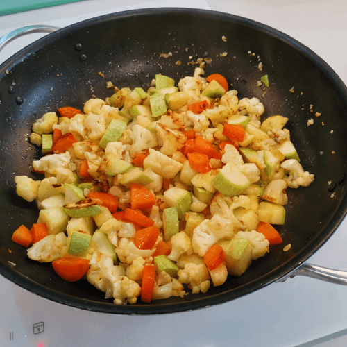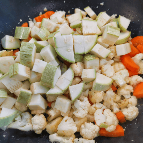 Добавить кабачок к овощам.