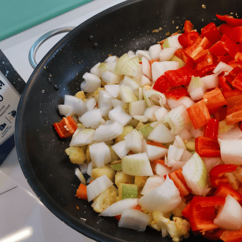Отправить овощи в разогретое на сковороде масло.