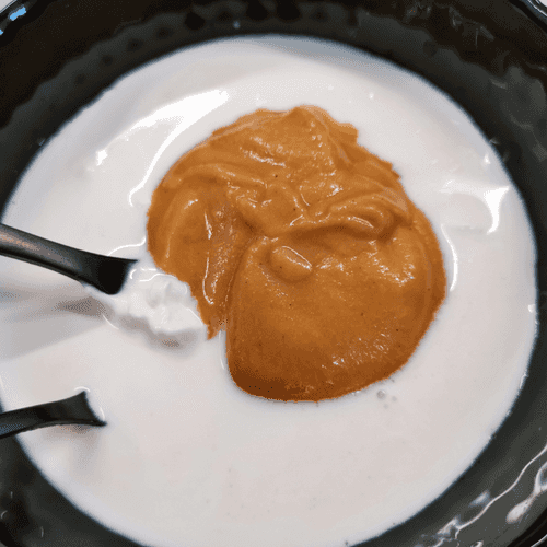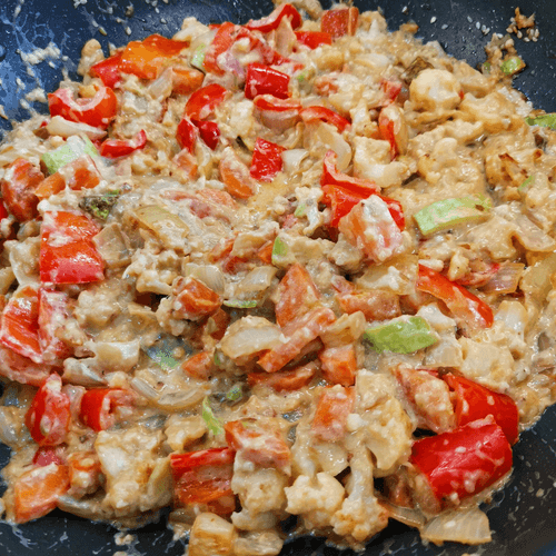 Спустя 5–6 минут после добавления кунжута добавить получившийся соус в рагу и перемешать.