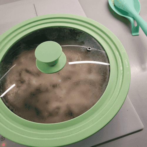 Перемешать и накрыть крышкой. Еще немного убавить огонь.