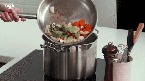 В большой кастрюле вскипятить воду, добавить соль (2–3 грамма на 1 литр) и бросить туда овощи.