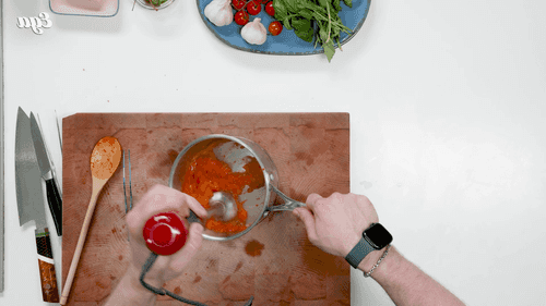 Пробить блендером перцы до состояния пюре. Накрыть фольгой, чтобы оно не сильно остыло.