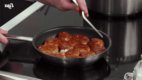 Переложить перцы в небольшой сотейник, добавить немного соли и перца, 15 мл оливкового масла. Поставить на средний огонь и прогреть, чтобы выпарить из них лишнюю влагу. Понадобится около 5 минут.