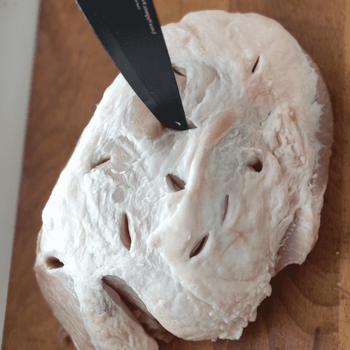 Ножом сделать глубокие надрезы с обеих сторон.