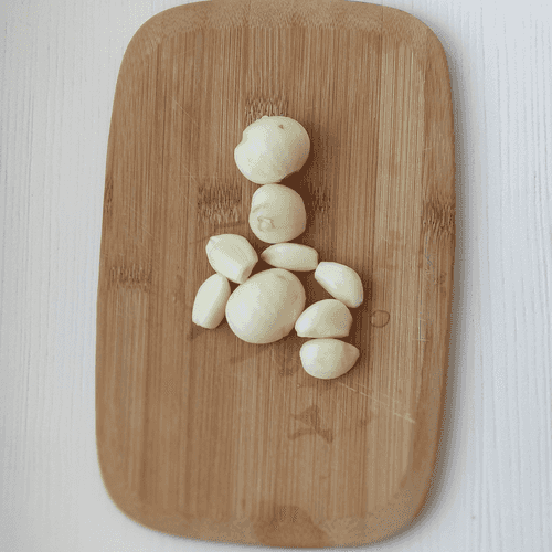 Разделить чеснок на зубчики и очистить от шелухи.