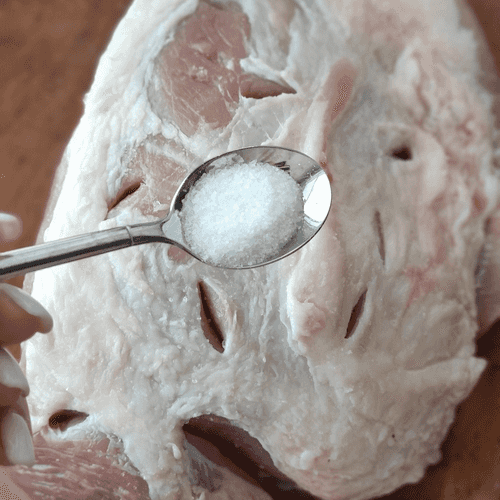 Свинину сначала посолить.
