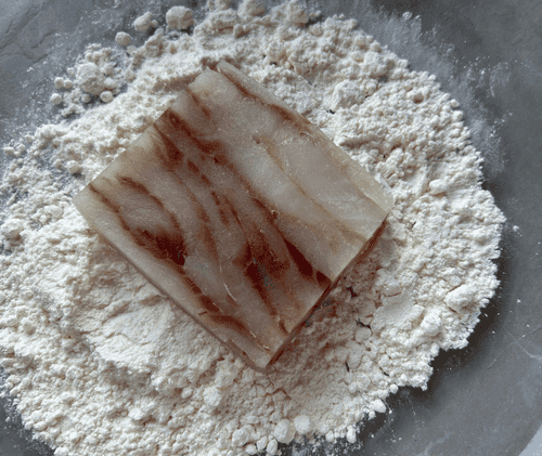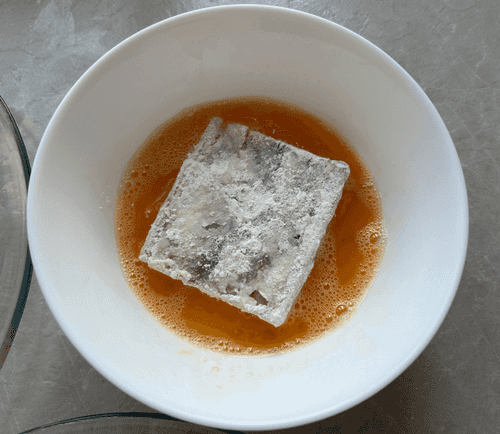 Обвалять кусочек филе в муке.