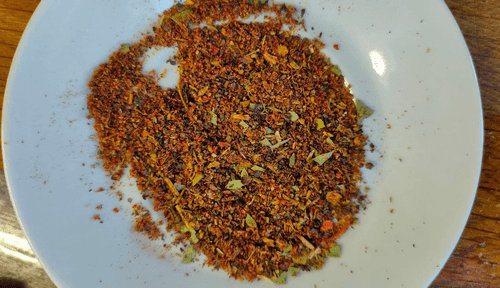 Специи растолочь в ступке и смешать с приправой.