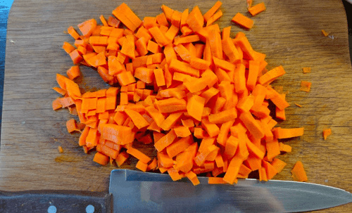 Морковь нарезать мелкими кубиками.