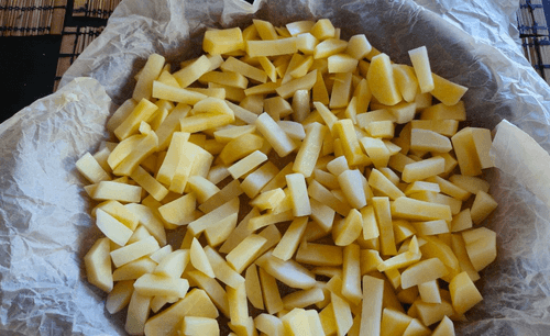 Картофель нарезать брусочками среднего размера.