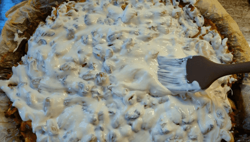 Далее равномерно разложить фарш.