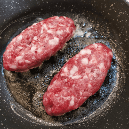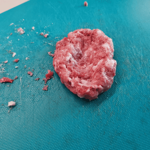 Сформировать из фарша лепешки и сделать в них вмятину по центру для сыра.