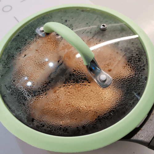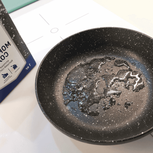 В сковороде разогреть оливковое масло с щепоткой крупной соли.