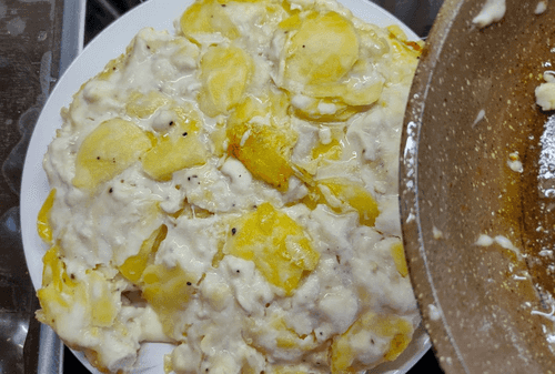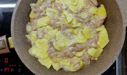 Картофельно-куриная запеканка на сковороде
