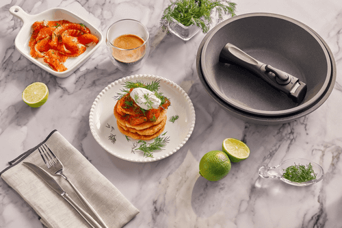 Драники с лососем – изысканное сочетание простоты и утонченности русской кухни. Хрустящие картофельные оладьи, пропитанные ароматом репчатого лука, идеально дополняются нежным слабосоленым лососем. Это блюдо воплощает в себе контраст текстур – воздушные и мягкие внутри драники встречаются с упругими кусочками рыбы. Исторически драники пришли к нам из белорусской кухни, но прочно закрепились в русской гастрономической традиции. Их часто подают со сметаной, которая добавляет кремовую нотку, а свежий укроп и лимонный сок придают легкую свежесть. Это блюдо прекрасно подходит для утреннего завтрака или уютного семейного ужина, а двойной эспрессо делает его еще более утонченным. Драники с лососем – это вкус, который объединяет традиции и современный гастрономический стиль.