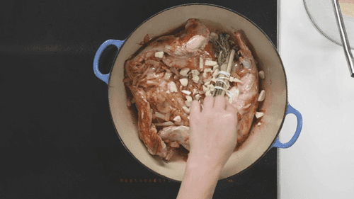 Собрать букет гарни из сельдерея, лаврового листа, тимьяна, стеблей петрушки, перевязав все кулинарной нитью.