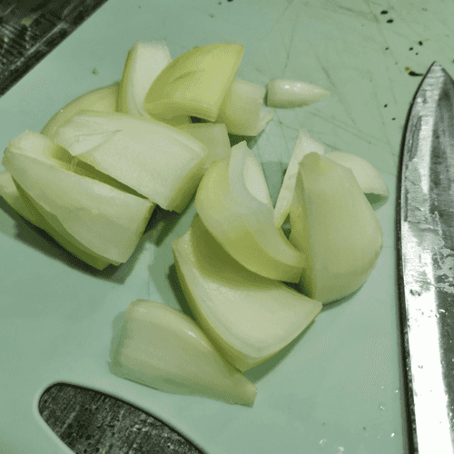 Через 3–5 минут, как только рыба подрумянится, перевернуть. Лук перемешать.