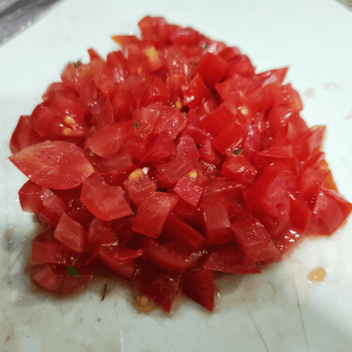 Помидоры некрупно нарезать.