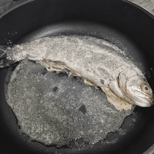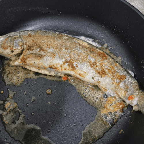 Как только рыба подрумянится, перевернуть.