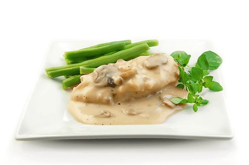 Курица в кремовом соусе — изысканное французское блюдо, сочетающее нежность куриного филе с насыщенным ароматом белого вина, сметаны и дижонской горчицы. Этот рецепт, родом из классической французской кухни, воплощает баланс сливочной текстуры и легкой пикантности. Обжаренная в оливковом масле курица приобретает золотистую корочку, а затем пропитывается богатым соусом, аромат которого усиливается свежими листьями эстрагона. Блюдо идеально подходит как для уютного семейного ужина, так и для торжественного приема гостей. Подавайте с гарниром из свежих овощей или нежного картофельного пюре, чтобы полностью насладиться этой гастрономической гармонией. Вкус — нежный, сливочный, с тонкими винными нотками и легкой горчичной остротой.
