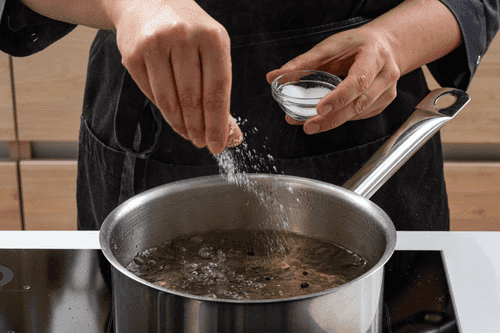 Вскипятить воду в большой кастрюле. Посолить, добавить перец горошком, лавровый лист.