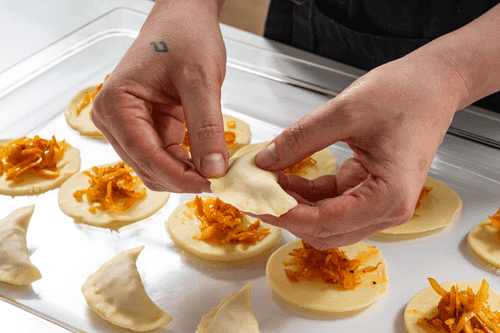 Вареники с капустой — это классическое блюдо русской кухни, олицетворяющее уют и домашнее тепло. Их история уходит корнями в славянскую традицию приготовления мучных изделий с разнообразными начинками. Нежное тесто, приготовленное на основе муки, сливочного масла и сметаны, оборачивает ароматную начинку из тушеной капусты с томатной пастой, морковью и луком. Вареники отличаются мягкостью и насыщенным вкусом, в котором соединяются сладость овощей и легкая кислинка капусты. Их подают горячими, обычно со сметаной, которая дополняет вкус нежностью и кремовой текстурой. Идеально подходят для семейных обедов или уютных вечеров, создавая атмосферу традиционного домашнего застолья. Каждый кусочек — это вкус истории, передаваемый через поколения.