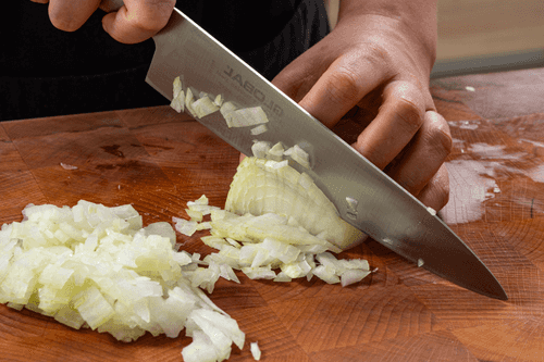 Нарезать лук мелкими кубиками.