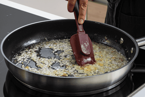В сковороде разогреть растительное масло и обжарить лук до золотистого цвета.