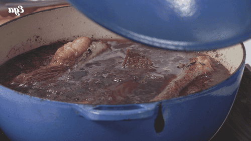 Накрыть крышкой и отправить в духовку на 1 час. За 20 минут до конца добавить целые луковицы шалота в кастрюлю.