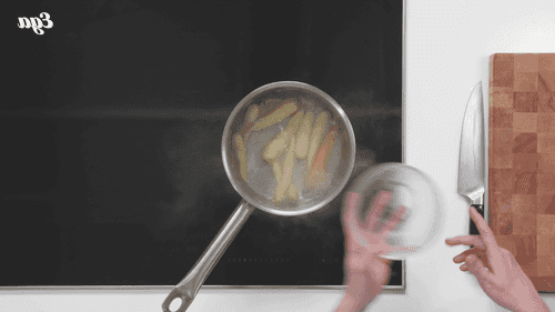 Морковь бросить в кипящую воду и варить 3–5 минут. Затем залить холодной водой, чтобы остановить приготовление.