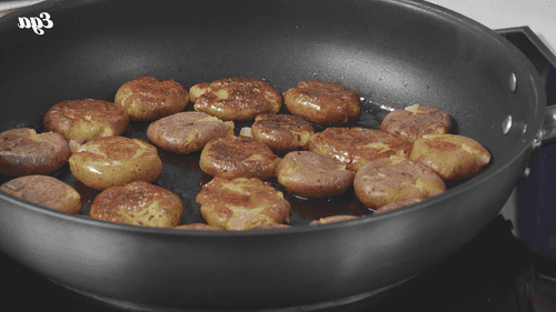 Картофель примять плоской стороной ножа или дном стакана.
