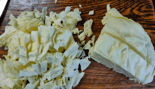 Резать лучше сперва вдоль на несколько больших кусков, а затем поперек, на мелкие полоски.