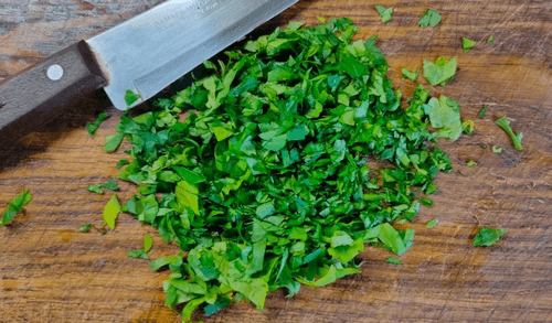 Тем временем, пока тушатся овощи, нарезать петрушку.