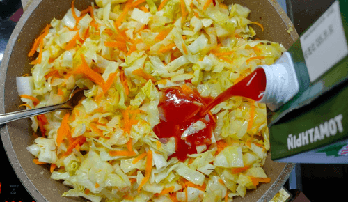 Когда капуста уже почти совсем готова, по вкусу добавить томатный сок.