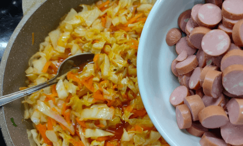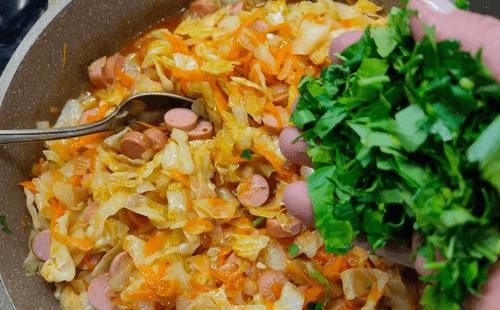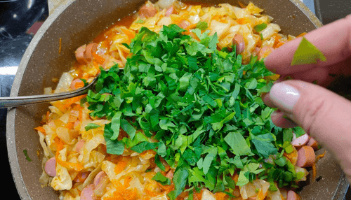 Солянка из свежей капусты — это уютное и ароматное блюдо европейской кухни, которое сочетает в себе простоту приготовления и насыщенный вкус. Это блюдо корнями уходит в традиционные русские и славянские рецепты, где капуста всегда занимала центральное место в питании. Нежная капуста, тушенная с луком и морковью, приобретает мягкость и насыщенный вкус, а добавление томатного сока придаёт ей лёгкую кислинку. Баварские сосиски добавляют аппетитную пикантность, а свежая петрушка завершает вкусовую композицию нотами свежести. Солянка из капусты прекрасно подходит как самостоятельное блюдо или гарнир, особенно если дополнить её маринованными огурцами и оливками. Это сытное, согревающее кушанье идеально для холодных вечеров, когда хочется чего-то домашнего и вкусного.
