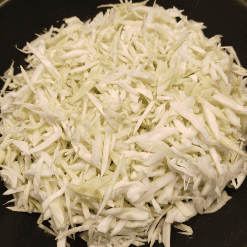 В этой же сковороде обжарить капусту в течение примерно 5–7 минут.