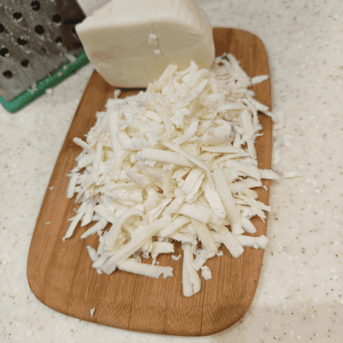 Добавить натертый сыр и тщательно перемешать, чтобы он расплавился. Убрать с огня.