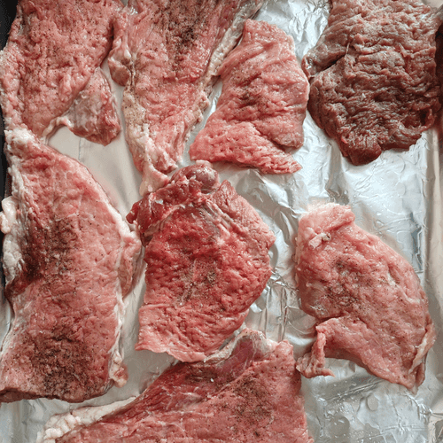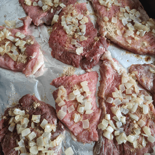 Выложить стейки на противень на небольшом расстоянии друг от друга.