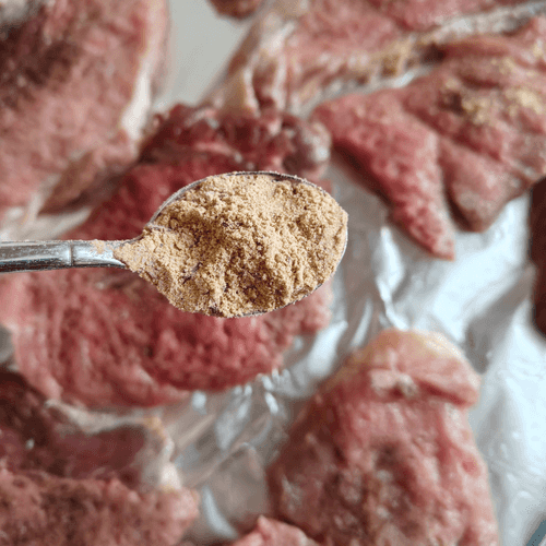 Приправить любыми специями для свинины.