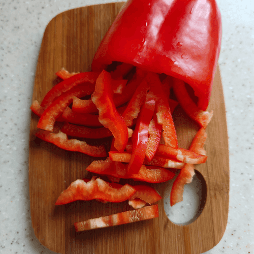 Болгарский перец разрезать на тонкие полоски.
