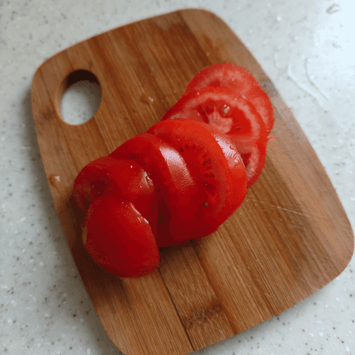 Помидоры нарезать на кружочки.