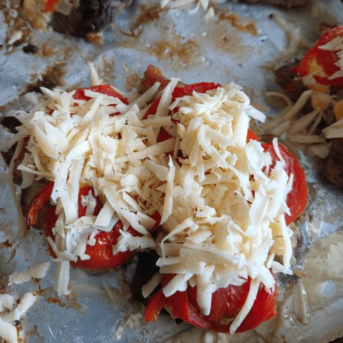 За 5 минут до готовности посыпать каждый кусок сыром и убрать обратно в духовку, пока сыр не расплавится.