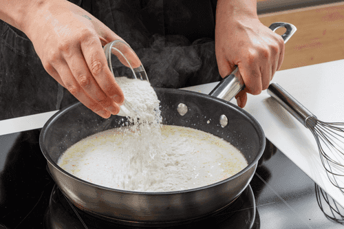 Добавить в соус рисовую муку и еще раз довести до кипения. Соус должен загустеть.
