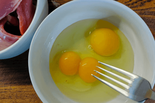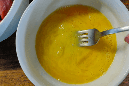 Яйца разбить в мисочку.