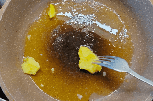 На сковороде разогреть топленое масло (1–2 столовые ложки).