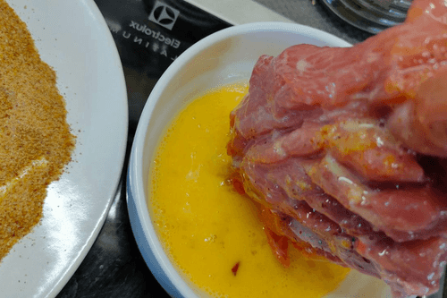 Каждый кусок индейки обвалять в яйце.
